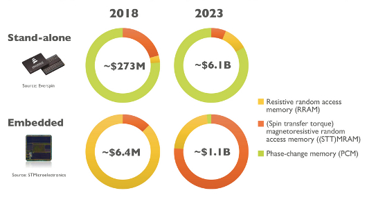 This will represent about 83 percent of an annual stand-alone emerging non-volatile memory market worth about $6.1 billion in 2023 up from $273 million in 2018. This is a compound annual growth rate of about 86 percent.