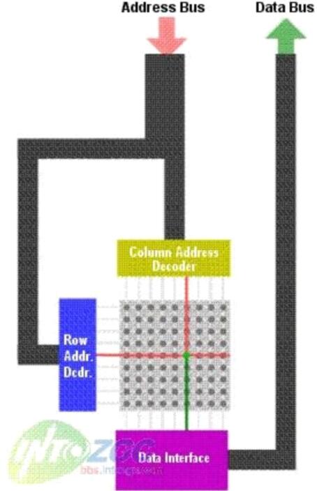 需要注意的是RAM內(nèi)的部存儲信息的矩陣并不是一個正方形的,也就是行和列的數(shù)目不是相同的--行的數(shù)目比列的數(shù)目少(DRAM)。