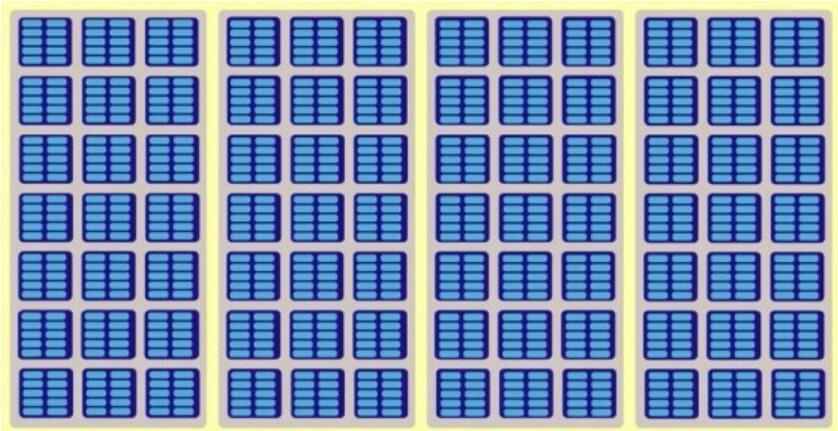 閃存陣列的簡化圖。黃色框突出顯示die,淺灰色為plane,深藍(lán)色為塊,淺藍(lán)色框則為page。該圖僅用于可視化層次結(jié)構(gòu),而不能按比例繪制。(HyperstoneYoutube頻道有更加詳細(xì)說明)