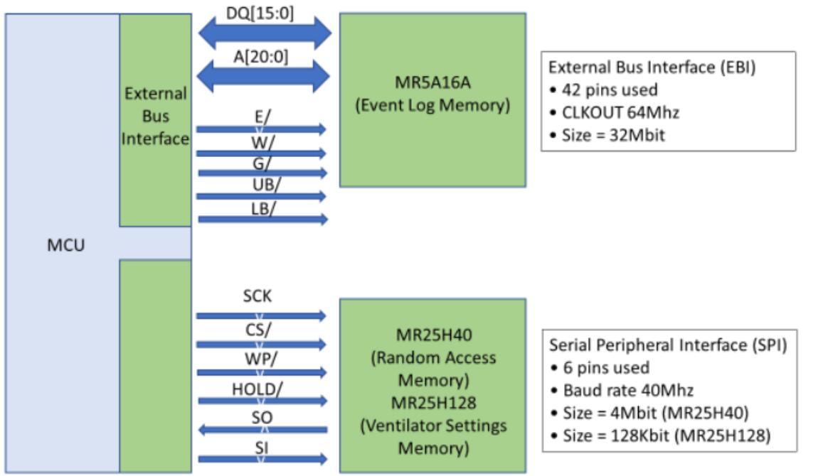 至少4Mb (MR25H40)的MRAM可用于存儲(chǔ)操作軟件程序變量。存儲(chǔ)在MRAM的數(shù)據(jù)在呼吸機(jī)關(guān)閉期間保存。